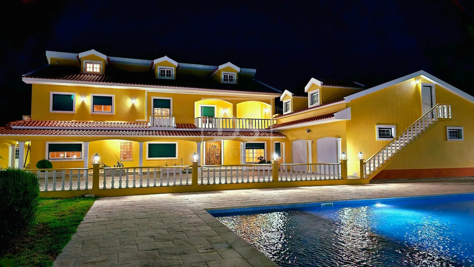 No exterior destaca-se uma piscina de 15x7m com cobertura elétrica, zonas de refeições e um amplo terreno com cerca de 24.000 m², com pomar e solo fértil.